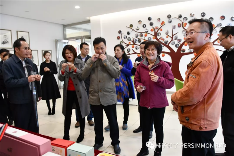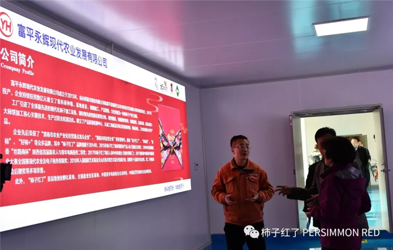 剛到廠門口,就受到了富平永輝全體工作人員的熱烈歡迎。黃立紅一行興致勃勃地走進廠區,聽取專業人員的講解和柿子產品的介紹、并品嘗了公司旗下的“柿子紅了”“柿餅+核桃”等產品,嘖嘖稱贊味道好極了。