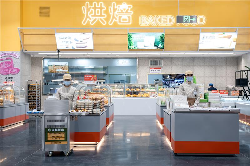 與未改造的永輝超市門(mén)店相比,世紀(jì)金源店改動(dòng)不小。兼顧日常生鮮食品消費(fèi)和節(jié)假日集中采購(gòu),是這家店呈現(xiàn)出得一大訴求。世紀(jì)金源店賣(mài)場(chǎng)布局更具空間感,烘焙、熟食、鮮肉、水果、蔬菜、水產(chǎn)、食品、百貨、酒飲、散裝零食等品類(lèi)依次分布在賣(mài)場(chǎng)主動(dòng)線(xiàn)上。精選出的近10000個(gè)SKU采用量販?zhǔn)疥惲校沟谜麄€(gè)賣(mài)場(chǎng)更像是一家倉(cāng)儲(chǔ)店。永輝超市同時(shí)在賣(mài)場(chǎng)內(nèi)設(shè)置了多個(gè)試吃點(diǎn),日常為消費(fèi)者提供主推單品試吃試飲,吸引其購(gòu)買(mǎi)。其中鮮食加工區(qū)、生鮮區(qū)是兩個(gè)主力區(qū)域,承擔(dān)了提升差異化,培養(yǎng)顧客粘性的職能。鮮食加工涵蓋烘焙、熟食、餐飲等品類(lèi)。永輝超市一方面借鑒引入了榴蓮千層、烤雞等網(wǎng)紅商品,給沒(méi)有接觸過(guò)會(huì)員店、但又能夠從小紅書(shū)等社交網(wǎng)絡(luò)平臺(tái)上了解到相關(guān)網(wǎng)紅品的消費(fèi)者提前體驗(yàn)。另一方面, 永輝超市也聯(lián)合當(dāng)?shù)毓?yīng)商,上架了有機(jī)鮮花餅、甜皮鴨等區(qū)域特色商品。其中烘焙品類(lèi)是永輝超市重點(diǎn)發(fā)力的增長(zhǎng)品類(lèi)。《第三只眼看零售》認(rèn)為,這也是零售企業(yè)發(fā)力產(chǎn)品差異化,向制造型零售商靠攏的機(jī)會(huì)品類(lèi)。因?yàn)楹姹合M(fèi)的場(chǎng)景邊界正在模糊,逐漸從節(jié)日、紀(jì)念日滲透進(jìn)人們?nèi)粘I钪械牧闶?、正餐。在此背景下,零售商提供?gòu)買(mǎi)方便、品類(lèi)齊全的烘焙產(chǎn)品,培養(yǎng)了消費(fèi)者“隨手帶”一份烘焙商品、隨吃隨買(mǎi)的習(xí)慣。而且,相比較烘焙專(zhuān)業(yè)店來(lái)說(shuō),零售賣(mài)場(chǎng)的烘焙品類(lèi)更具性?xún)r(jià)比。生鮮品類(lèi)是永輝超市的強(qiáng)項(xiàng)。結(jié)合產(chǎn)地倉(cāng)優(yōu)勢(shì)后,世紀(jì)金源店進(jìn)一步強(qiáng)化其新鮮感。例如門(mén)店內(nèi)設(shè)置的步入式生鮮冷藏區(qū),具有兩個(gè)功能。一是陳列有100個(gè)左右的蔬菜單品,讓對(duì)新鮮程度要求最高的蔬菜保持穩(wěn)定低溫,以此減少損耗;二是發(fā)揮暫儲(chǔ)功能。例如預(yù)估銷(xiāo)量較大的賣(mài)場(chǎng)堆頭陳列生鮮品等即可暫存在冷藏區(qū)內(nèi),方便門(mén)店隨時(shí)補(bǔ)貨。《第三只眼看零售》注意到,世紀(jì)金源店內(nèi)的生鮮品類(lèi)均為預(yù)包裝銷(xiāo)售。其中超90%商品由永輝云南產(chǎn)地倉(cāng)的加工倉(cāng)自主完成,多重保障嚴(yán)控食品安全。而且,店中設(shè)有獨(dú)立肉品加工間,可以實(shí)現(xiàn)肉禽類(lèi)產(chǎn)品冷藏、冷凍雙位一體,并能根據(jù)消費(fèi)者需求實(shí)現(xiàn)現(xiàn)場(chǎng)切割。“生鮮品牌化能為商品帶來(lái)更可觀(guān)的附加值,例如產(chǎn)品生產(chǎn)標(biāo)準(zhǔn)化、更多溢價(jià)空間、原材料、品質(zhì)保障、縮短消費(fèi)者選擇路徑等。實(shí)際上現(xiàn)在不少零售企業(yè)也在著力推動(dòng)自有品牌建設(shè),并從低價(jià)賣(mài)點(diǎn)階段發(fā)展到高品質(zhì)、性?xún)r(jià)比階段。”凱度消費(fèi)者指數(shù)大中華區(qū)總經(jīng)理虞堅(jiān)曾對(duì)《第三只眼看零售》分析稱(chēng)。生鮮標(biāo)品化程度提升后,也有利于企業(yè)做到線(xiàn)上線(xiàn)下每一個(gè)生鮮單品同條碼、同價(jià)格、同品質(zhì),從而迎合線(xiàn)上線(xiàn)下一體化運(yùn)營(yíng)需求。例如世紀(jì)金源店即可通過(guò)“自有渠道+第三方渠道”為消費(fèi)者提供線(xiàn)上最遠(yuǎn)20公里半徑內(nèi)配送、最快30分鐘送達(dá)服務(wù)。此外,圍繞“全球+全國(guó)+本地”的垂直供應(yīng)鏈,永輝結(jié)合當(dāng)前消費(fèi)趨勢(shì)及當(dāng)?shù)叵M(fèi)偏好,幾乎在每個(gè)產(chǎn)品類(lèi)目中都打造出了“進(jìn)口+全國(guó)+云南特色”的商品結(jié)構(gòu)。就拿生鮮產(chǎn)品來(lái)說(shuō),永輝云南旗艦店引入了來(lái)自新西蘭的牛羊肉、進(jìn)口龍蝦、帝王蟹等優(yōu)質(zhì)進(jìn)口生鮮產(chǎn)品,來(lái)自全國(guó)各優(yōu)質(zhì)產(chǎn)區(qū)的新鮮蔬果,也增加了具有本地特色的云南火腿、牛干巴、天麻等地域農(nóng)副生鮮產(chǎn)品,最大程度滿(mǎn)足不同消費(fèi)者需求。