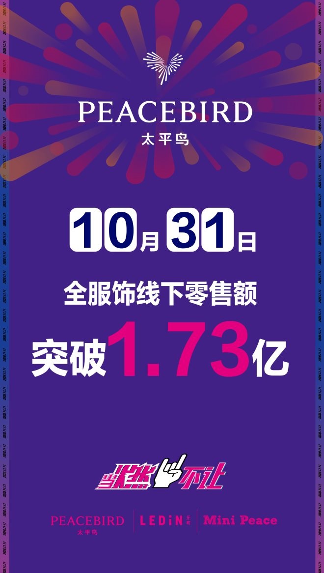 此外,截止31日24時,太平鳥全服飾品牌線下零售額突破1.73億。