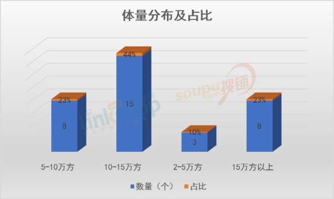 從商業(yè)體量上看,10-15萬方的商業(yè)體是主流。