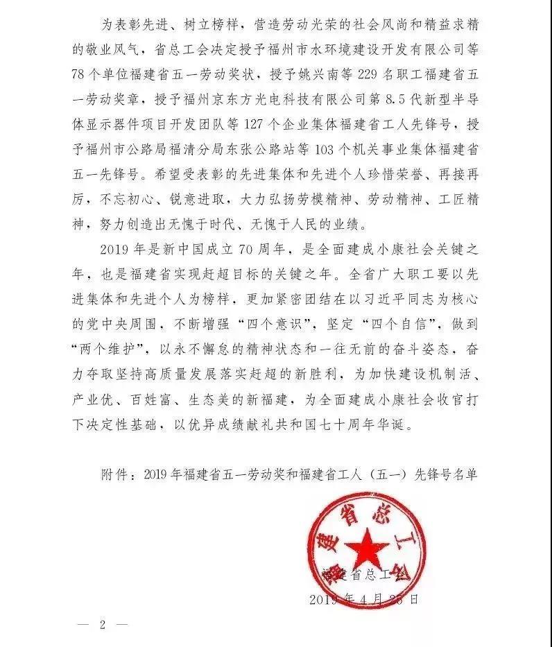 2019年福建省五一勞動(dòng)獎(jiǎng)先進(jìn)集體與個(gè)人名單