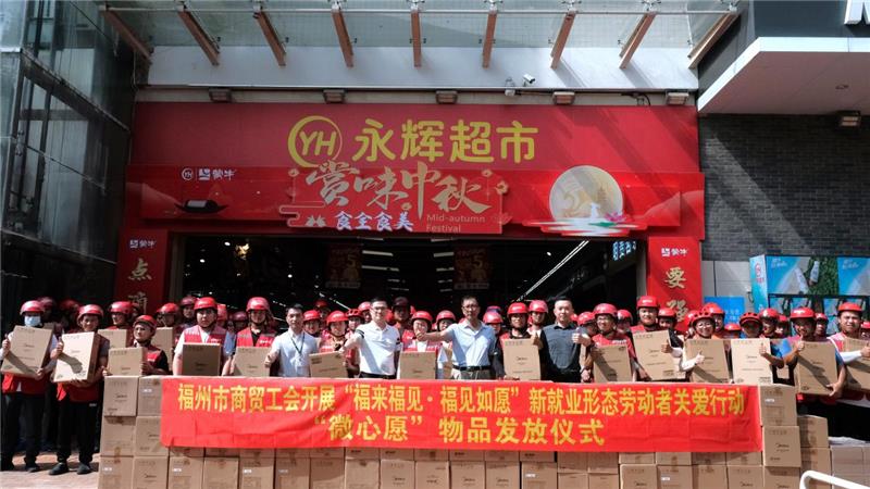 福州市商貿(mào)工會開展“福來福見、福見如愿” 新就業(yè)形態(tài)勞動者關愛行動物品發(fā)放儀式